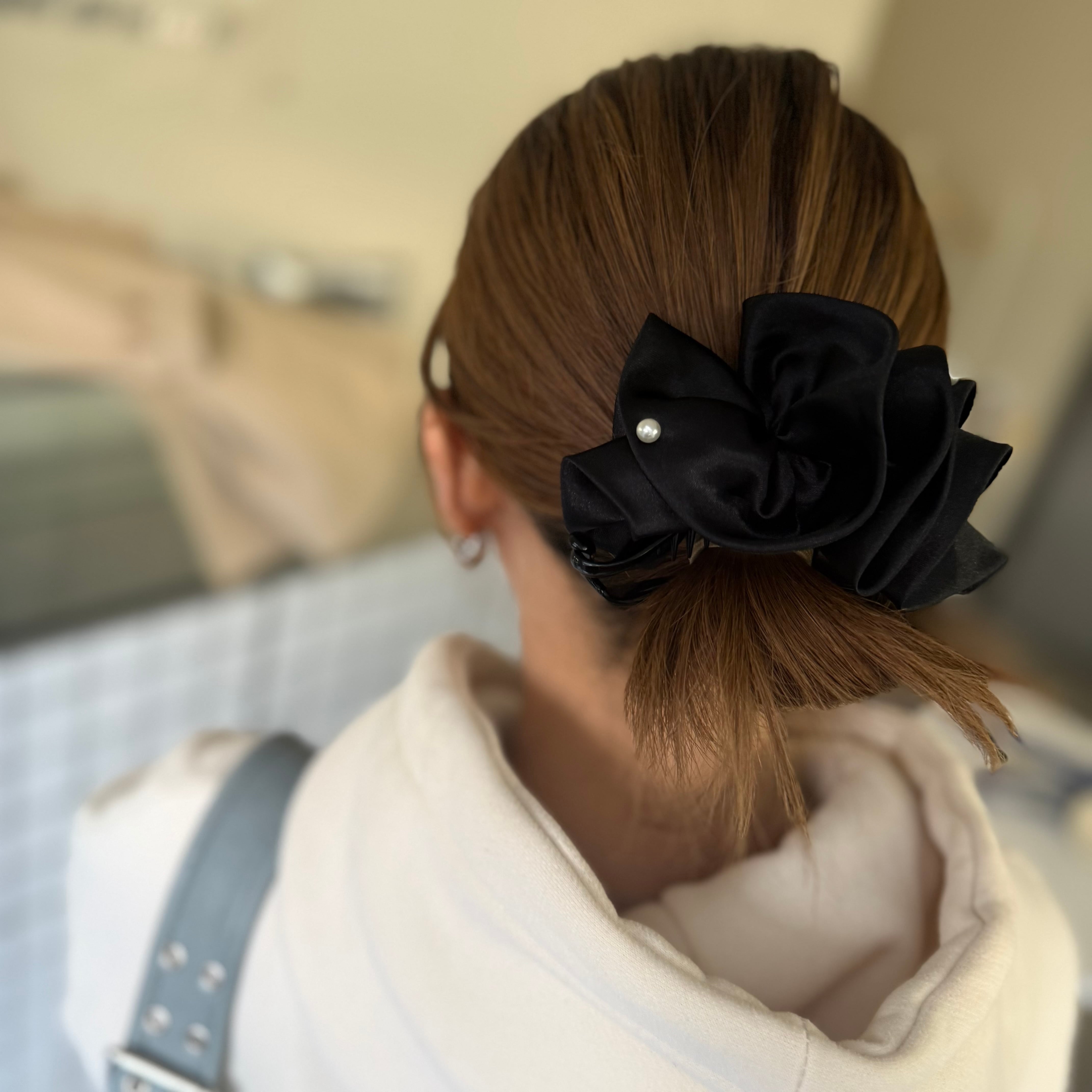サテン素材のくしゅくしゅデザインクリップ。