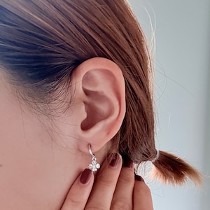 キラキラ輝く揺れるデザインのクローバーモチーフピアス。