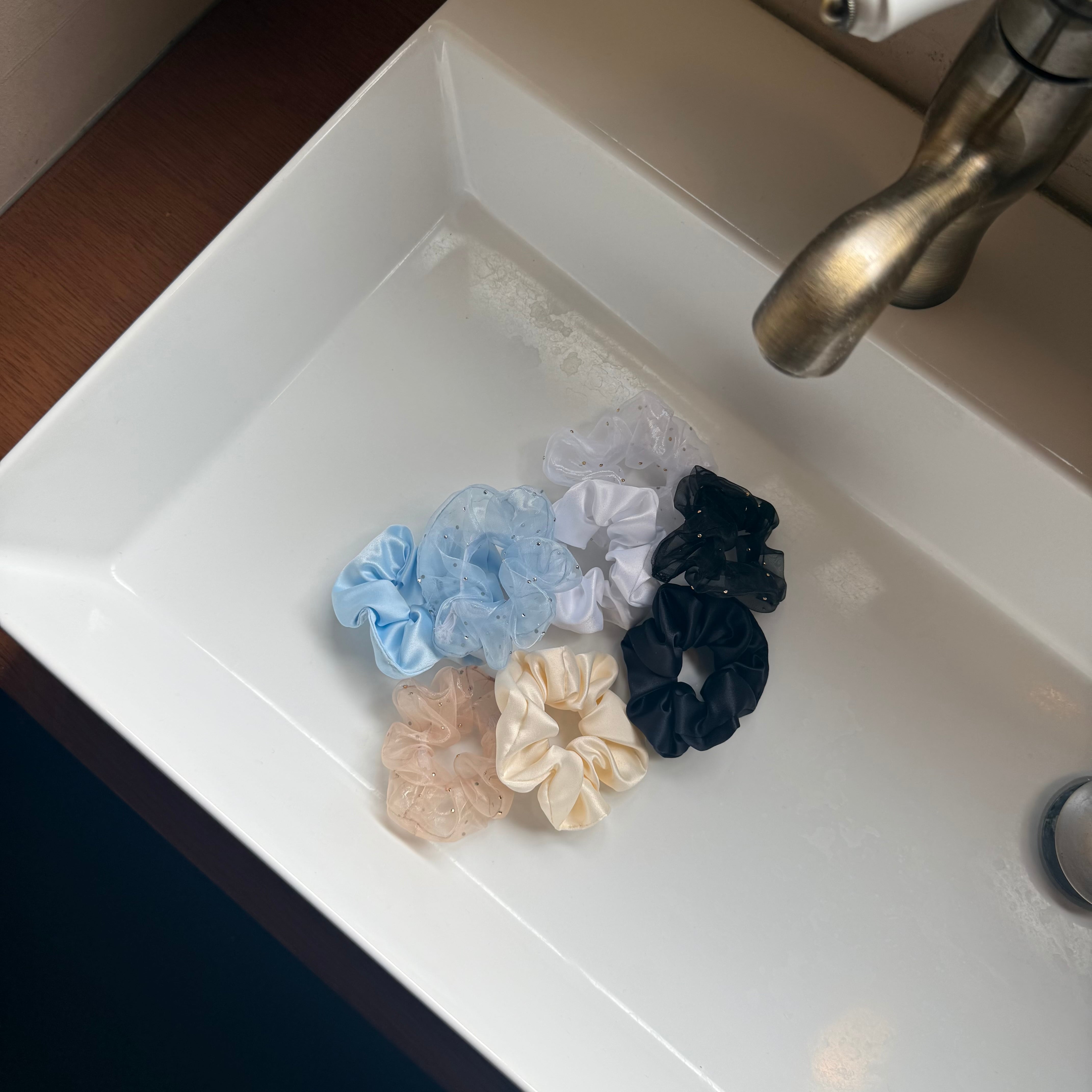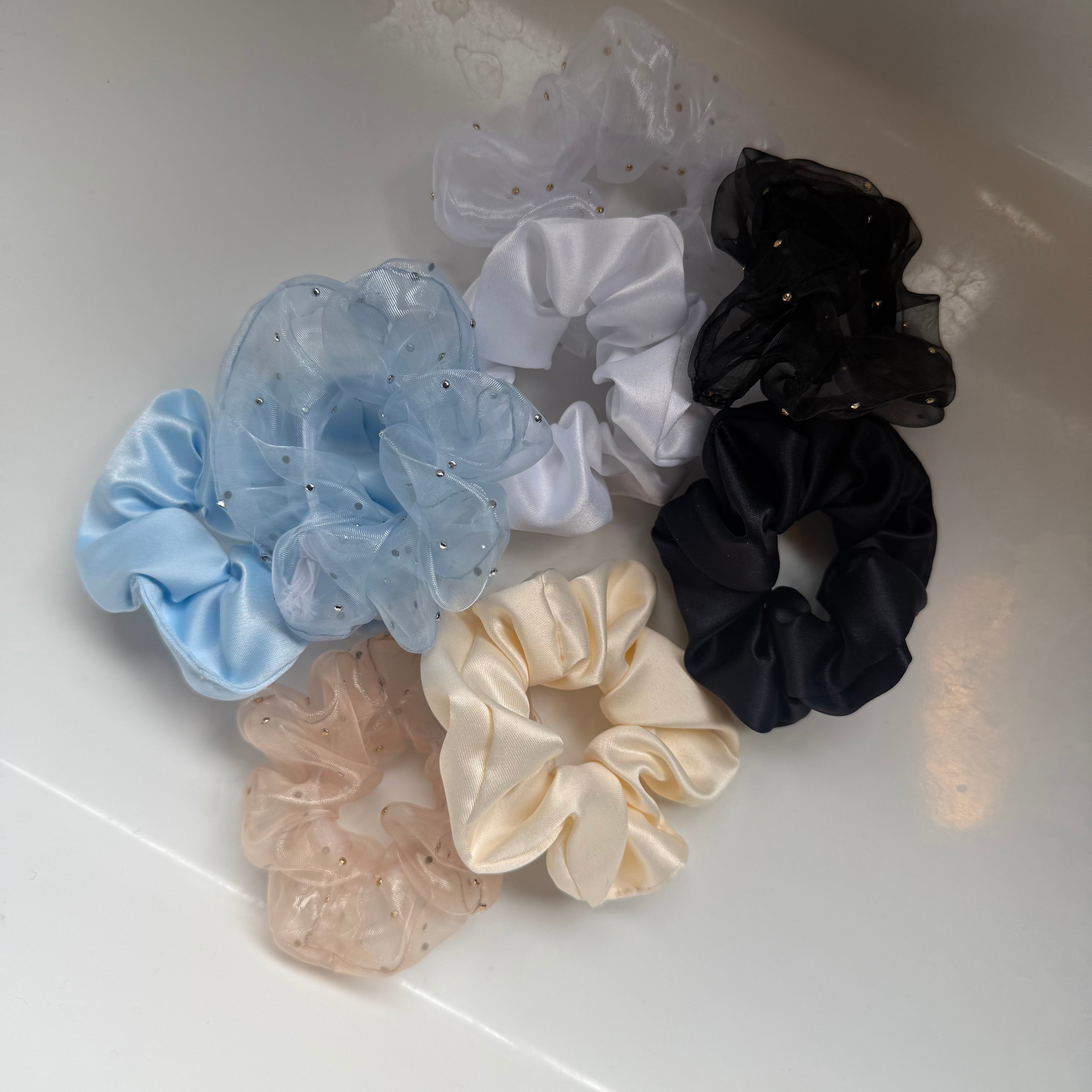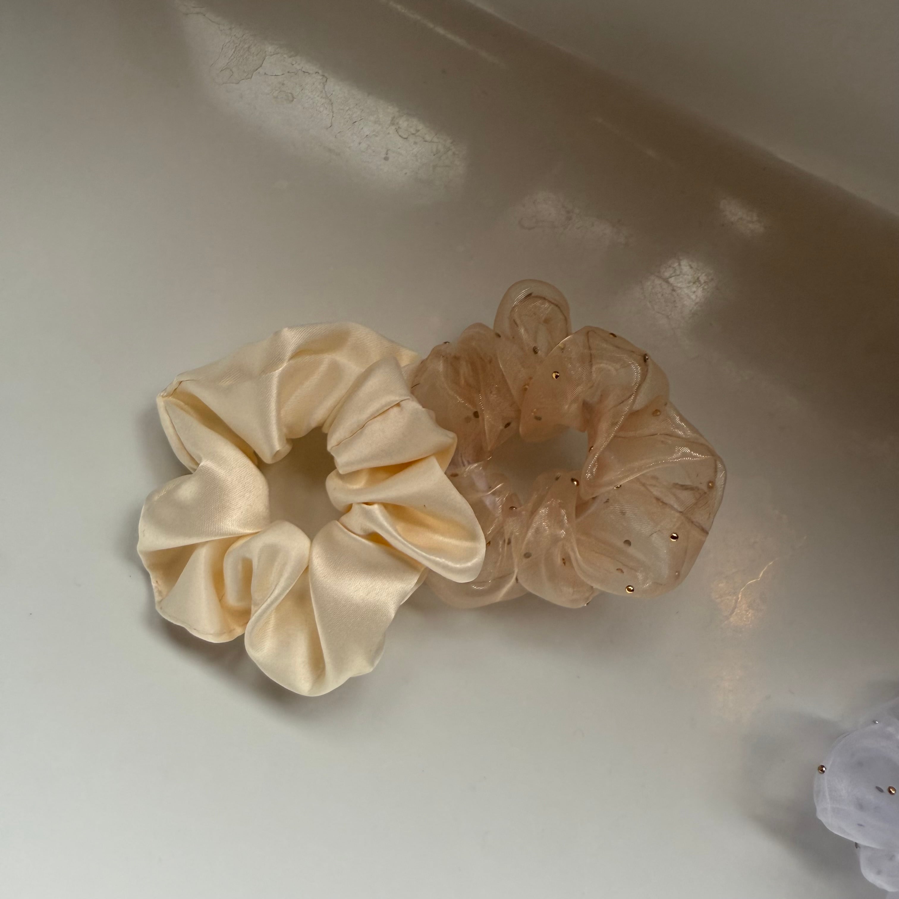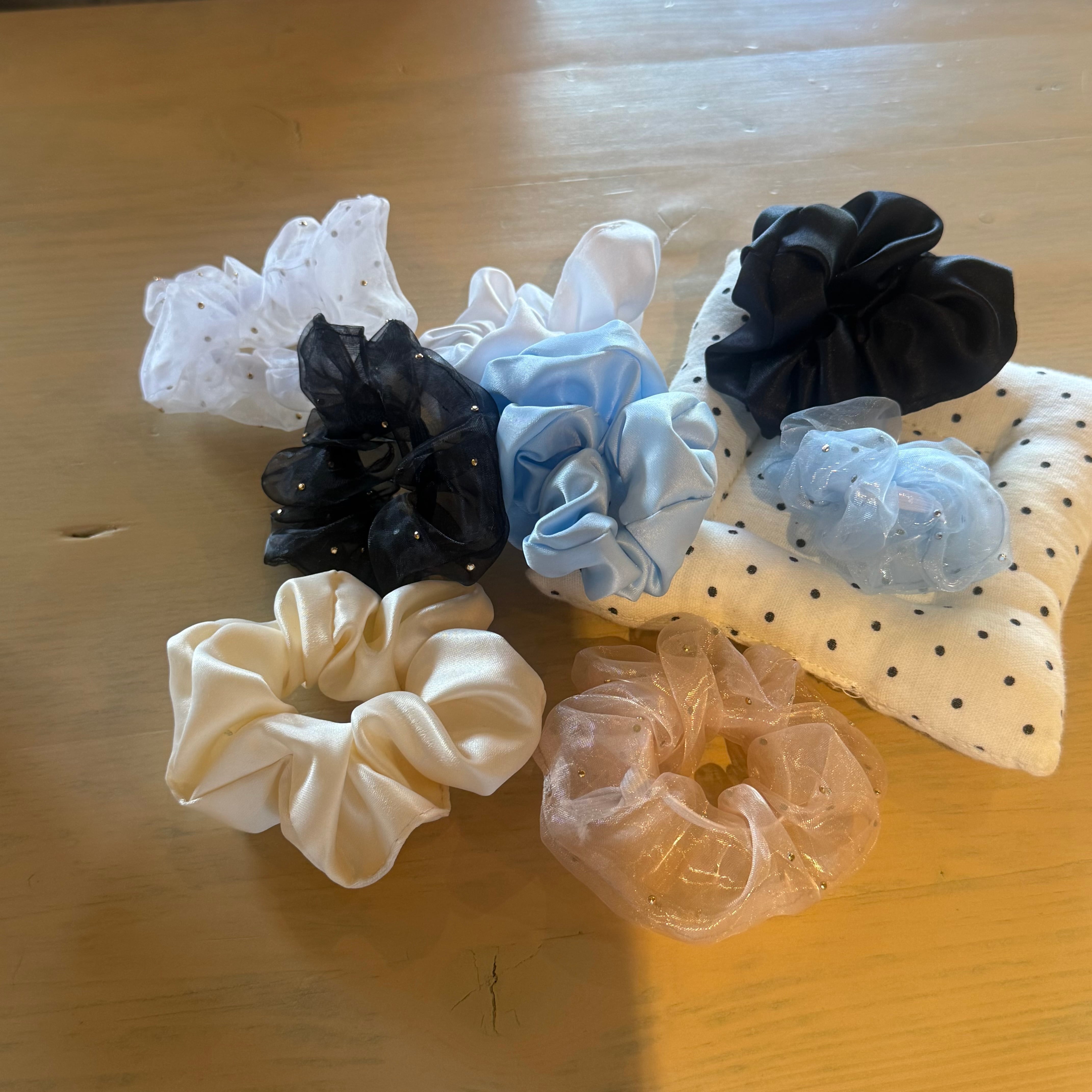 ヘアアレンジアイテムとして人気のミニシュシュ。